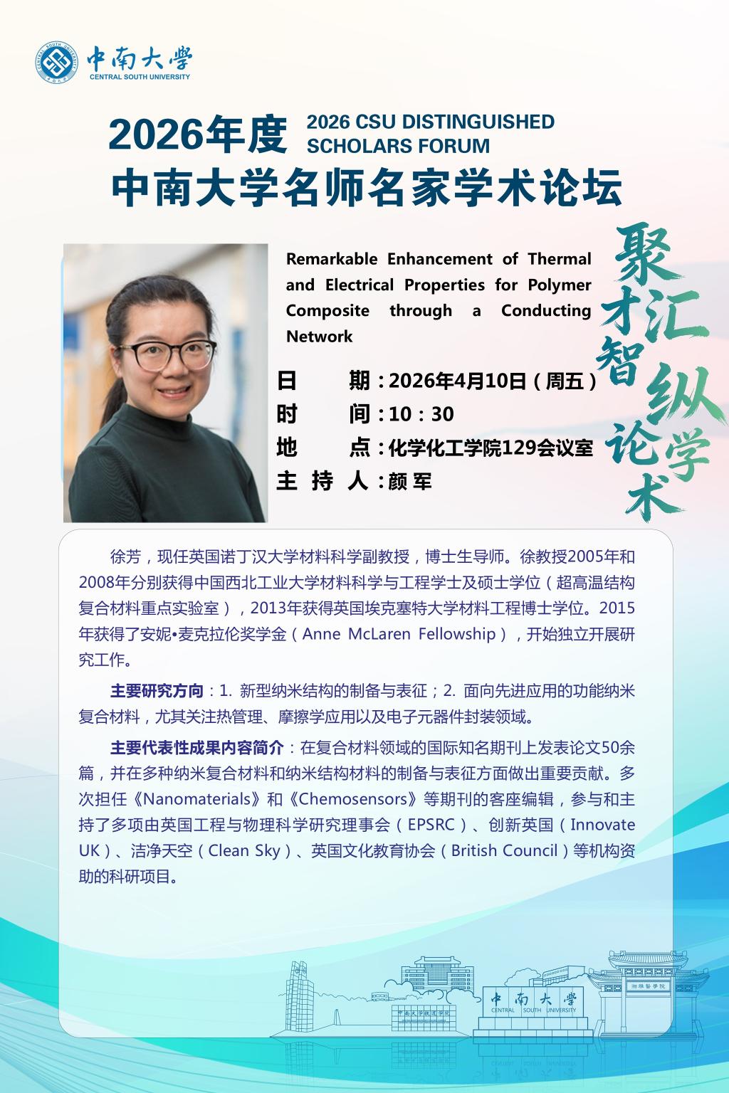 报告题目:Remarkable Enhancement of Thermal and Electrical Properties for Polymer Composite through a Conducting Network
