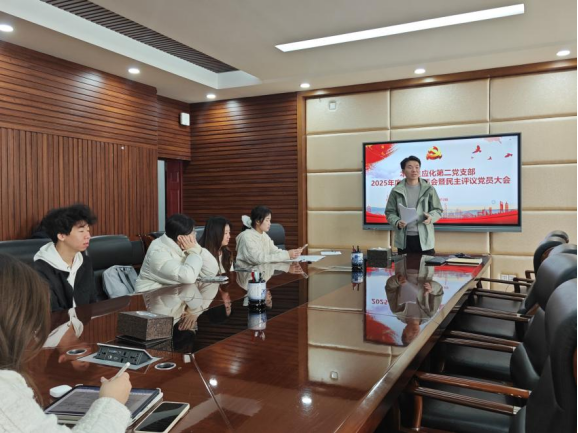 会议第四项,民主评议阶段,全体党员秉持客观公正态度,严格按照评议标准,以无记名投票方式开展民主测评,客观评价每位党员一年来的综合表现。联系支部的汪菁垚同志对本次组织生活会进行点评,对会议准备充分、程序规范、批评深刻、评议认真给予充分肯定,同时就持续加强理论学习、狠抓问题整改、发挥先锋模范作用、强化支部建设等方面提出具体要求与希望。随后根据民主测评结果评定赵元超、付荣芳两位同志为优秀等次。
