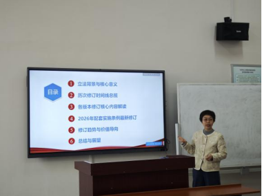 会议第二项,由无机系支部书记王曼娟老师为支部全体党员讲授党课。王老师围绕《中华人民共和国药品管理法》,结合制药工程专业特色,从立法背景与核心意义、历次修订时间线总揽、各版本修订核心内容解读、2026年配套实施条例最新修订,以及修订趋势与价值导向五个方面,系统解读了药品管理法的修订历程。王老师指出,作为制药工程系的党员,同学们既是未来医药行业的技术人才,更是保障药品安全、服务人民健康的重要力量。她强调,党员同志要深刻理解药品管理法“保护和促进公众健康”的立法宗旨,在专业学习与科研实践中,坚守质量安全意识,筑牢药品安全底线,努力成为医药产业高质量发展的践行者与推动者。