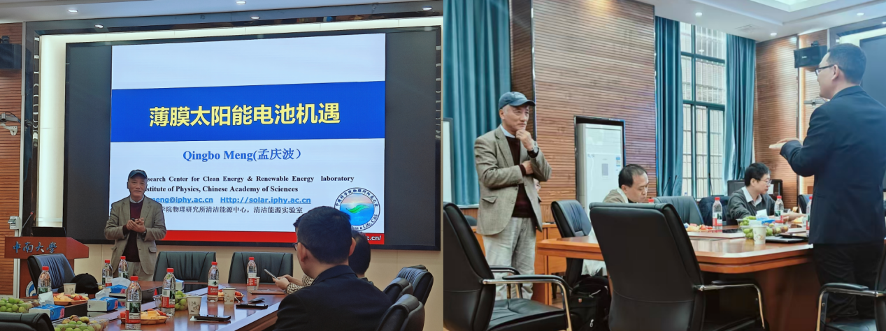 2025年10月27日上午,中南大学化学学科发展论坛——光电化学论坛在中南大学潇湘校区化学楼129报告厅举行。本次论坛由中南大学化学化工学院承办,邹应萍教授担任主持人。论坛特邀来自中科院物理研究所的孟庆波研究员、北京师范大学的薄志山教授、中科院化学研究所的侯剑辉研究员、中国科学院宁波材料研究所的葛子义研究员、汕头大学的武庆贺教授五位享有盛誉的专家学者,与中南大学化学化工学科的师生代表齐聚一堂,围绕薄膜太阳能电池、有机太阳能电池、有机光伏材料、柔性钙钛矿太阳能电池及稠环缺电子有机物等前沿研究领域,展开深入且富有成效的学术交流。
