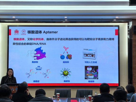 朱志教授在《微流控生物定向进化及其应用》报告中,以 “核酸适体(化学抗体)” 为核心工具展开分享:先说明核酸适体是经体外进化筛选的单链 DNA/RNA,具备高亲和、易修饰等特性;随后针对传统分子筛选中 “背景干扰多、效率低”“筛选与表征通量不匹配” 的问题,提出基于微流控技术的解决方案 —— 通过流体力学协同筛选平台提升分离效率,借助液滴微流控单分子筛选平台提高表征通量,展示了微流控技术在生物分子定向进化筛选中的应用潜力。