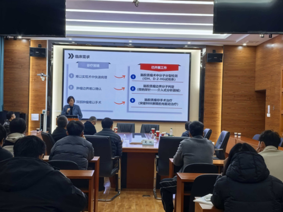戴志晖教授《基于多模原位检测的脑胶质瘤诊疗一体化研究》报告,聚焦脑胶质瘤这一中枢神经系统高发恶性肿瘤(占中枢恶性肿瘤 80%,是青壮年常见肿瘤死因),针对其诊疗中 “术中快速病理难实现、肿瘤边界难确认、深部肿瘤难手术” 的困境,分享了团队已开展的三类工作:研发脑胶质瘤术中分子分型检测试纸条(针对 IDH、D-2-HG 指标);利用微纳探针类介入式分析器械,实现肿瘤边界的分子判定;探索突破血脑屏障的光驱动治疗技术,解决深部肿瘤非手术治疗难题。