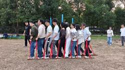 活动设置了双人同行、荡木桥挑战、无轨电车、同心鼓等多个兼具趣味性与挑战性的项目。在双人同行项目中,同学们两两搭档,于钢丝之上相互扶持,在平衡与协作的博弈中,让默契在一次次尝试中不断升温;荡木桥挑战环节,大家在摇荡的木桥上稳步前行,每一次迈步都是对勇气与协调能力的考验,更收获了突破自我的喜悦。