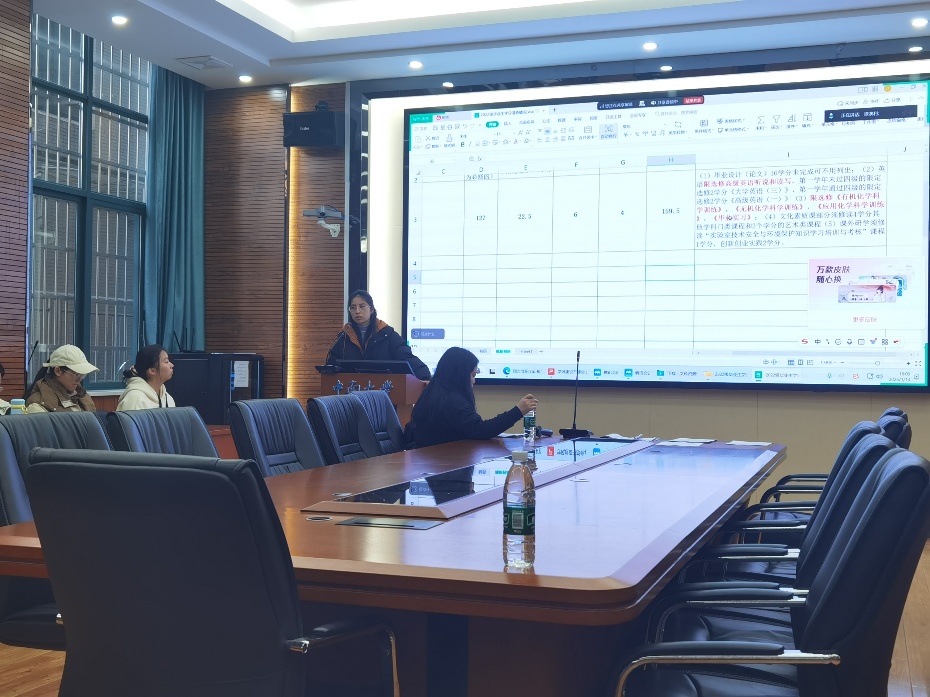 会议伊始,刘清老师围绕本科生培养方案展开详细解读,针对选课规则、课程修读要求、毕业审核标准等核心问题进行逐一梳理,明确了不同阶段学业任务的重点与注意事项。在互动提问环节,刘老师耐心解答了师生代表提出的培养方案执行细节、跨学科选课流程等疑问,为同学们清晰规划学业路径提供了权威指导。