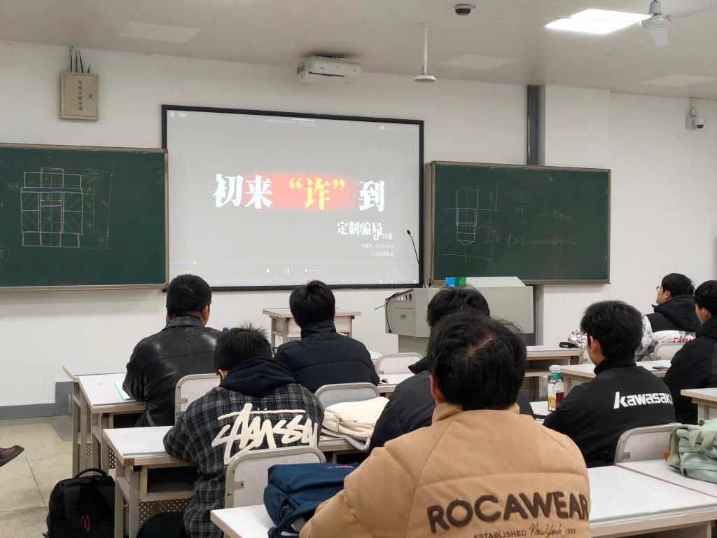 本次班会围绕财产安全与人身安全两大主题展开。财产安全板块重点讲解防诈骗与防盗窃:班长刘紫嫣同学结合近期高发的网络刷单、冒充熟人、AI 换脸等电信诈骗案例,提醒同学们牢记 “未知链接不点击、陌生来电不轻信、个人信息不透露”;同时叮嘱大家增强防盗意识,在食堂、图书馆等公共场所妥善保管贵重物品,宿舍做到随手锁门关窗。