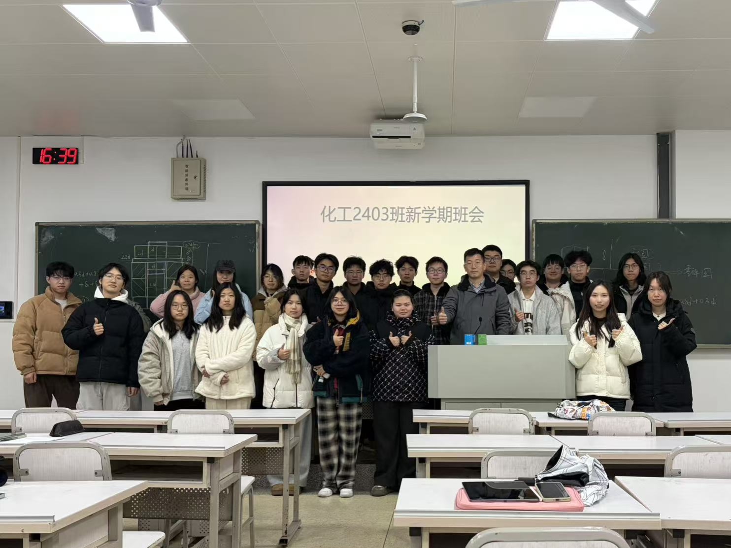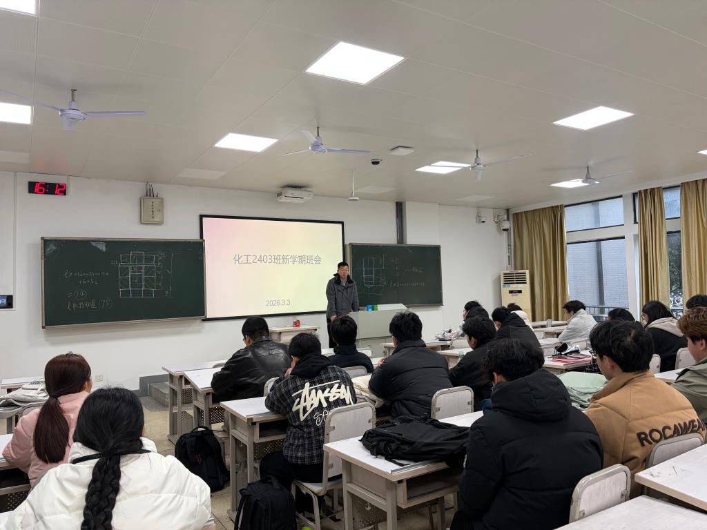 新学期伊始,为切实增强同学们的安全防范意识,筑牢校园安全防线,2026年3月3日下午,化学化工学院化工2403班于潇湘校区A座114教室召开安全教育主题班会。班导师陈伟老师出席班会并发表讲话,全体同学参加。