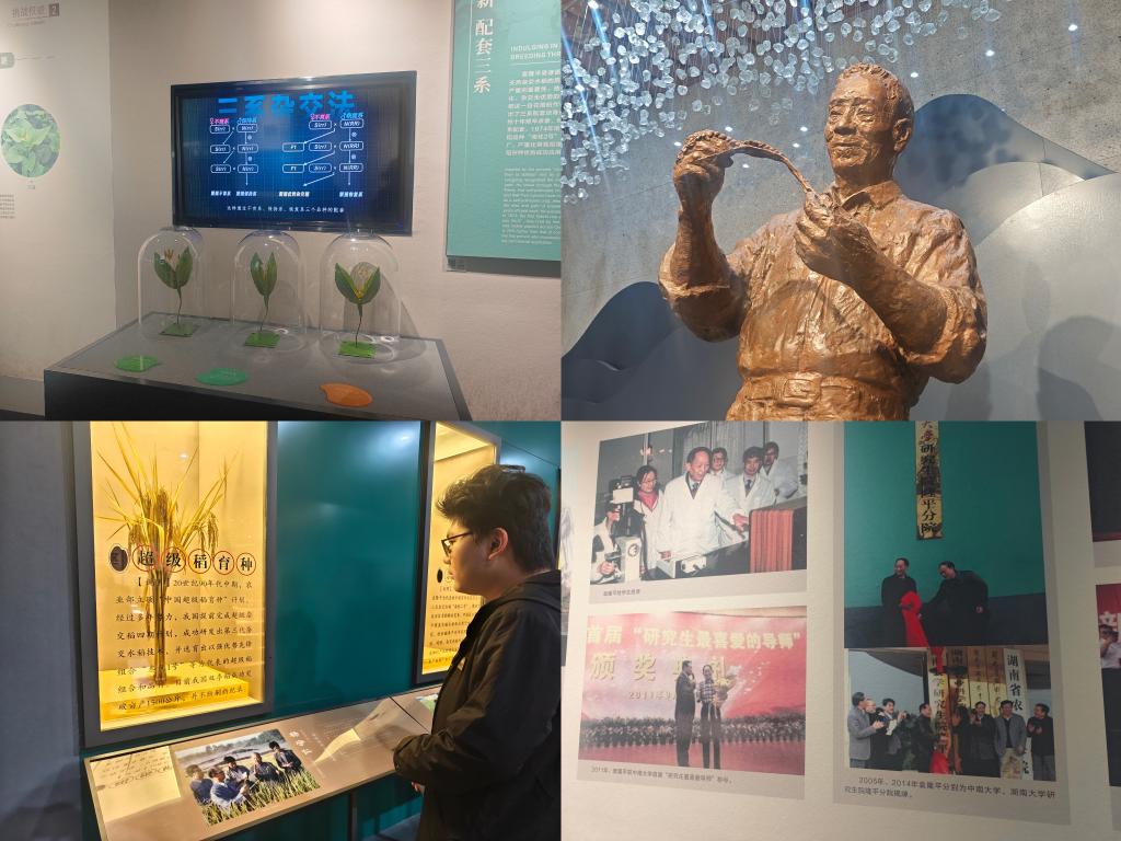 其中在“袁隆平与杂交水稻”展厅,团员们驻足于袁隆平院士生前使用的实验笔记、草帽与科研仪器前,认真聆听“三系法”突破、“两系法”攻关的艰辛故事,深刻感悟他“愿天下人都有饱饭吃”的赤子之心与“敢为人先、脚踏实地”的科研精神。