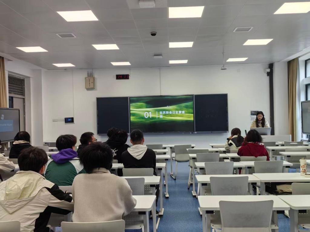 活动伊始,团支书于悦同学通过开展“粮食知识大讲堂”,将粮食安全理念与团组织生活紧密结合。团支书的讲解不仅让同学们系统学习了粮食生产知识与国家战略意义,对粮食生产周期、我国粮食生产与消费现状等方面有了一定了解,更激发了支部成员主动思考的责任意识。