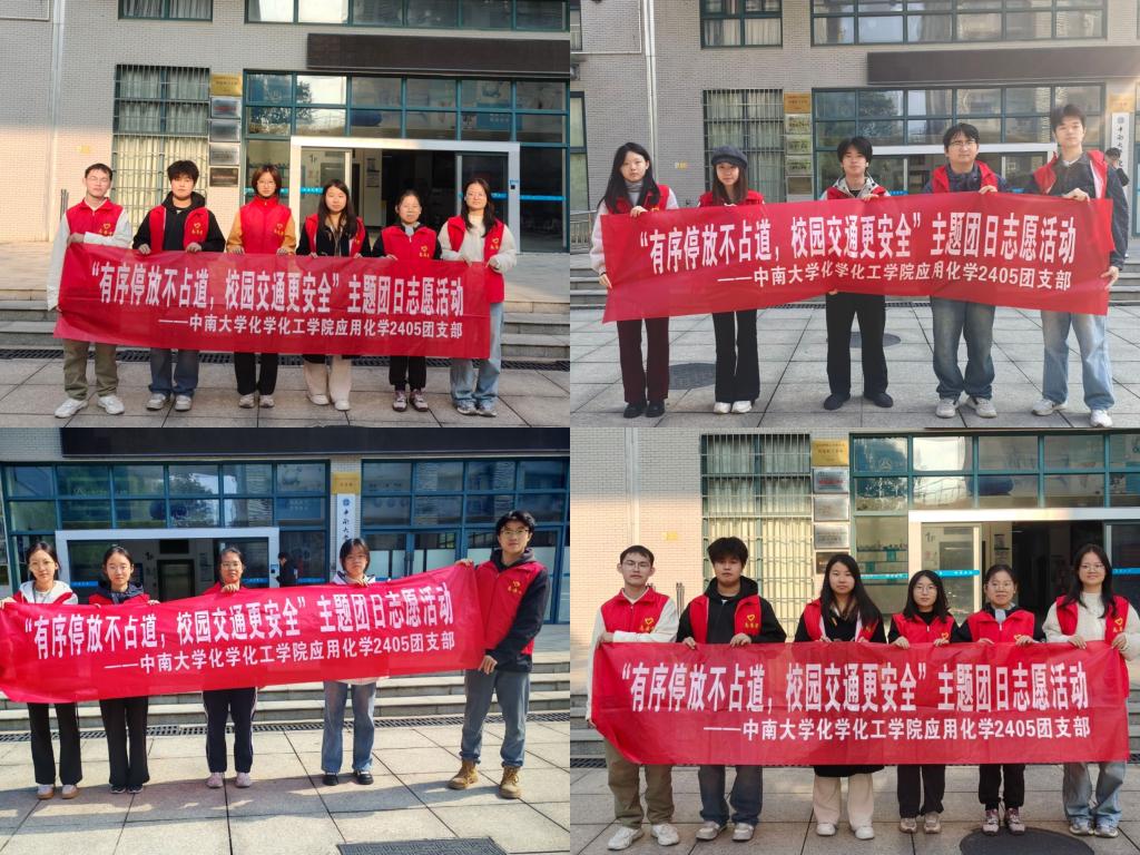 2025年10月23日,应化2405团支部全体成员以志愿引导为载体,于化工院前坪开展“有序停放不占道,校园交通更安全”交通安全主题团日活动,旨在向师生传递“规范停单车,安全你我他”的理念,提升大家对校园交通安全的重视程度与自觉维护意识。