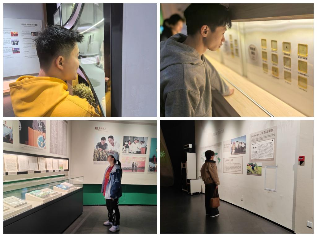 最触动同学们心弦的是“袁隆平与杂交水稻”展区。这里珍藏的一幅幅照片、一本本笔记,真实记录了袁隆平院士从立志解民之饥馑到毕生躬耕于田垄的动人事迹。同学们凝神观看着记录科研攻坚的影像,被他面对无数次失败仍坚韧不拔的意志所震撼。在象征着袁隆平毕生梦想的“禾下乘凉梦”艺术场景前,大家静默肃立,为其“一粒种子改变世界”的丰功伟绩和胸怀天下的赤子之情所深深感动。