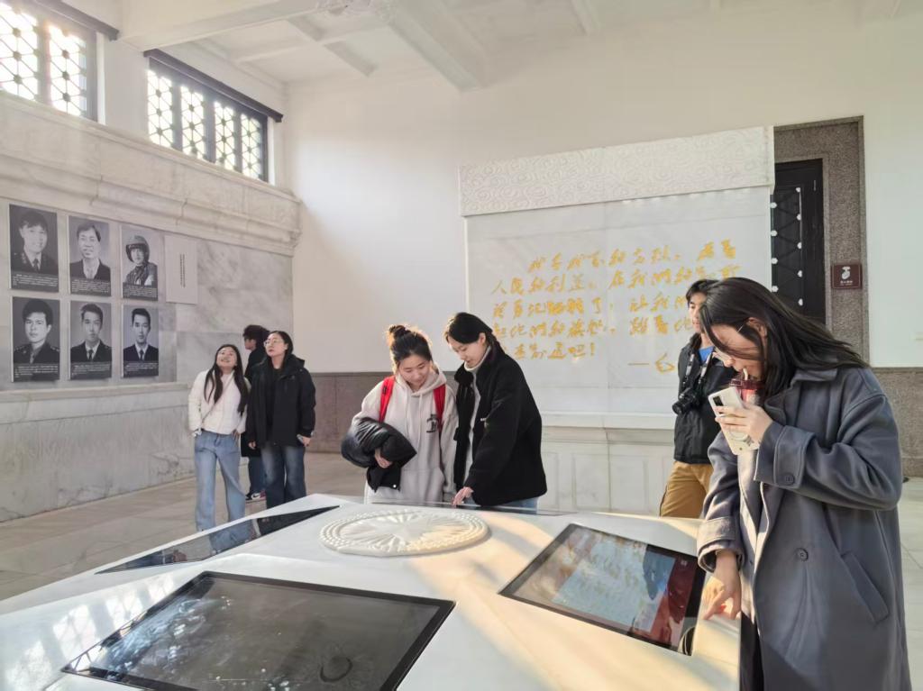“馆藏溯峥嵘,青言述汗青。”随后,同学们步入庄严肃穆的烈士纪念馆。在支部骨干的引导下,讲解员于悦同学以详实的史料与生动的细节,串联起湖湘先烈的奋斗足迹,并延伸至对南京大屠杀的深刻回望。先烈们的牺牲与民族的苦难彼此映照,让支部成员们在追溯中夯实记忆,将悲壮转化为力量,进一步激发了深厚的爱国情怀与使命担当。
