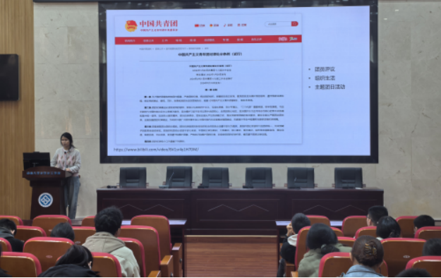 为强化团员纪律意识与培养责任担当,4月1日,化学化工学院2026年春季学期“团的纪律”主题团课于潇湘校区化工楼133报告厅顺利开展,由学院分团委书记肖茜斤主讲。
